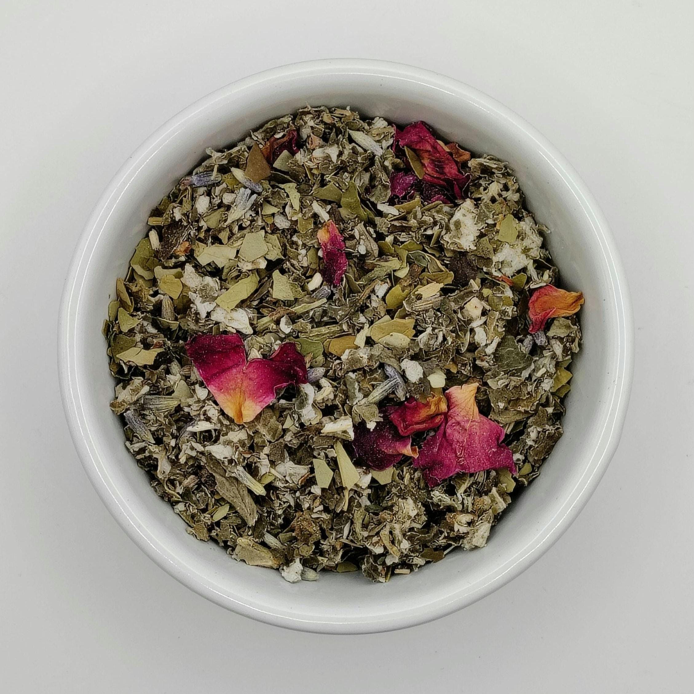 Ingredients: yerba mate, raspberry leaf, lavender, mint & rose petals