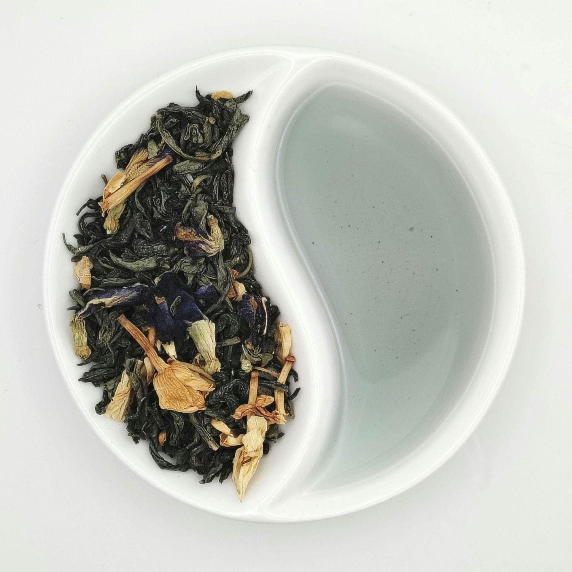Ingredients: Green Tea, Butterfly Pea Flower, Dried Jasmine, Vanilla Bean, Sea Salt, Bergamot Flavoring