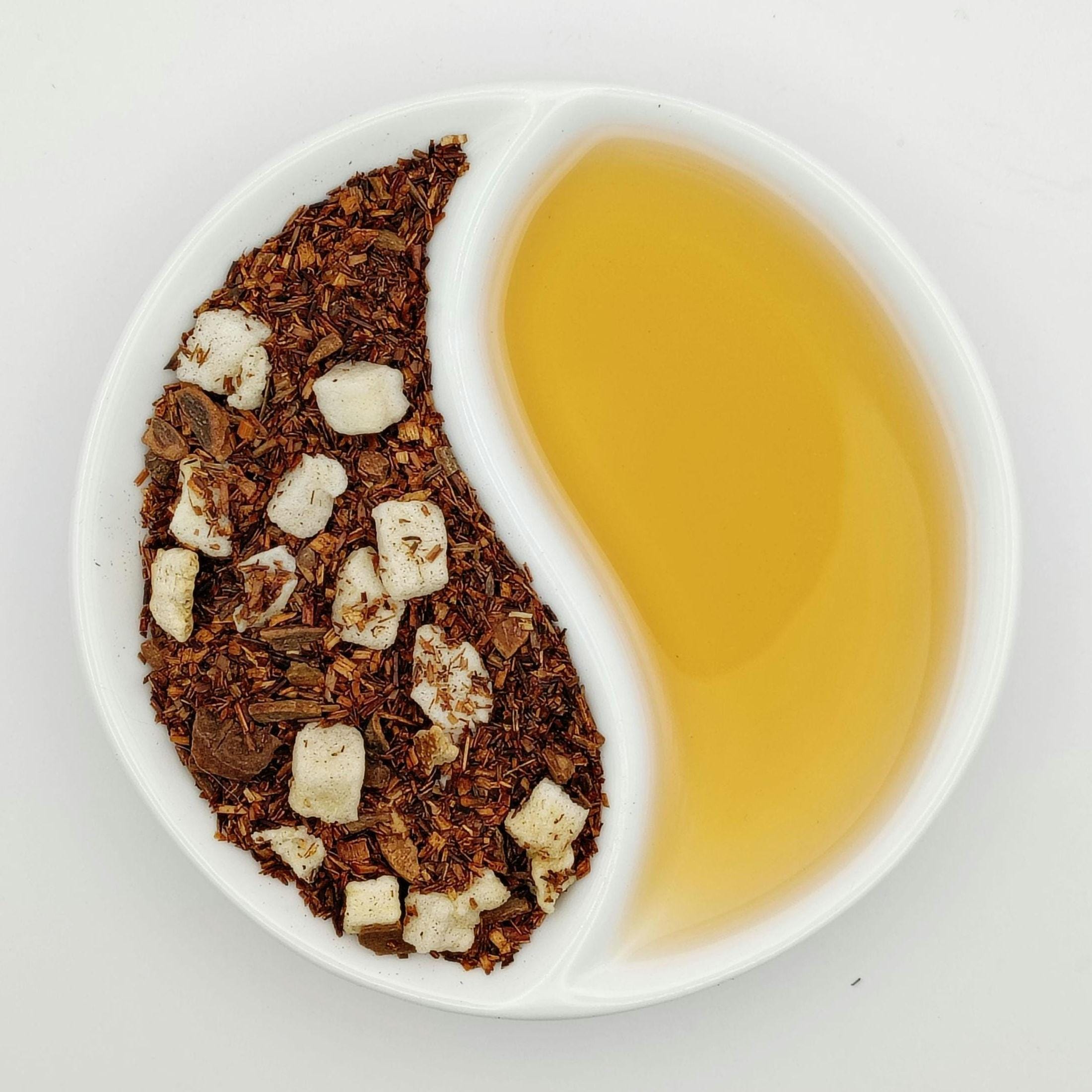 Ingredients: Red Roobios Tea, Cinnamon, apple pieces, Clove, Orange Peel, Ginger