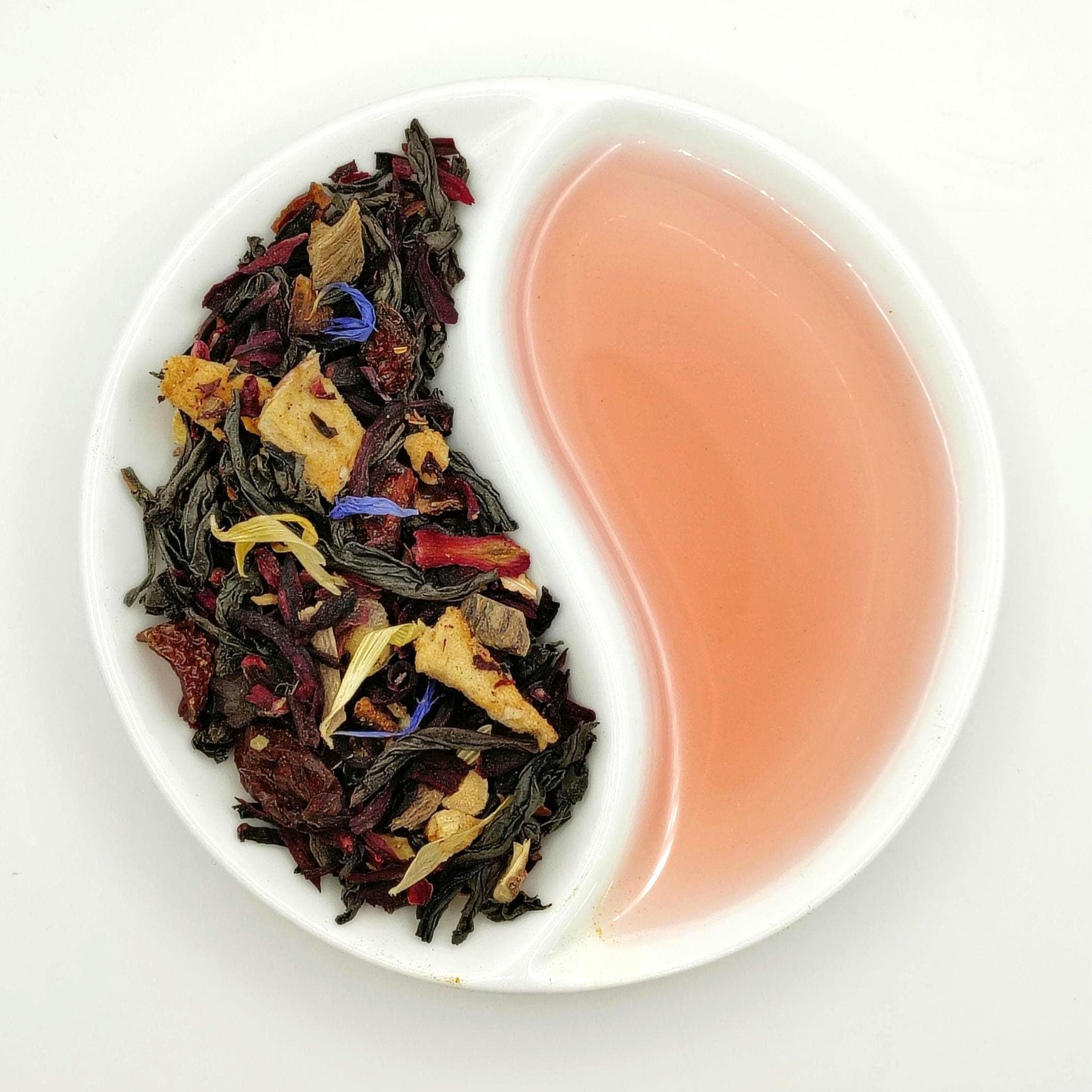 Ingredients: Ceylon OPA Tea, Dried Hibiscus, Freeze Dried Apple, Goji Berries, Rosehips, Ginger, Orange Peel, Licorice Root, Calendula & Blue Cornflower Petals