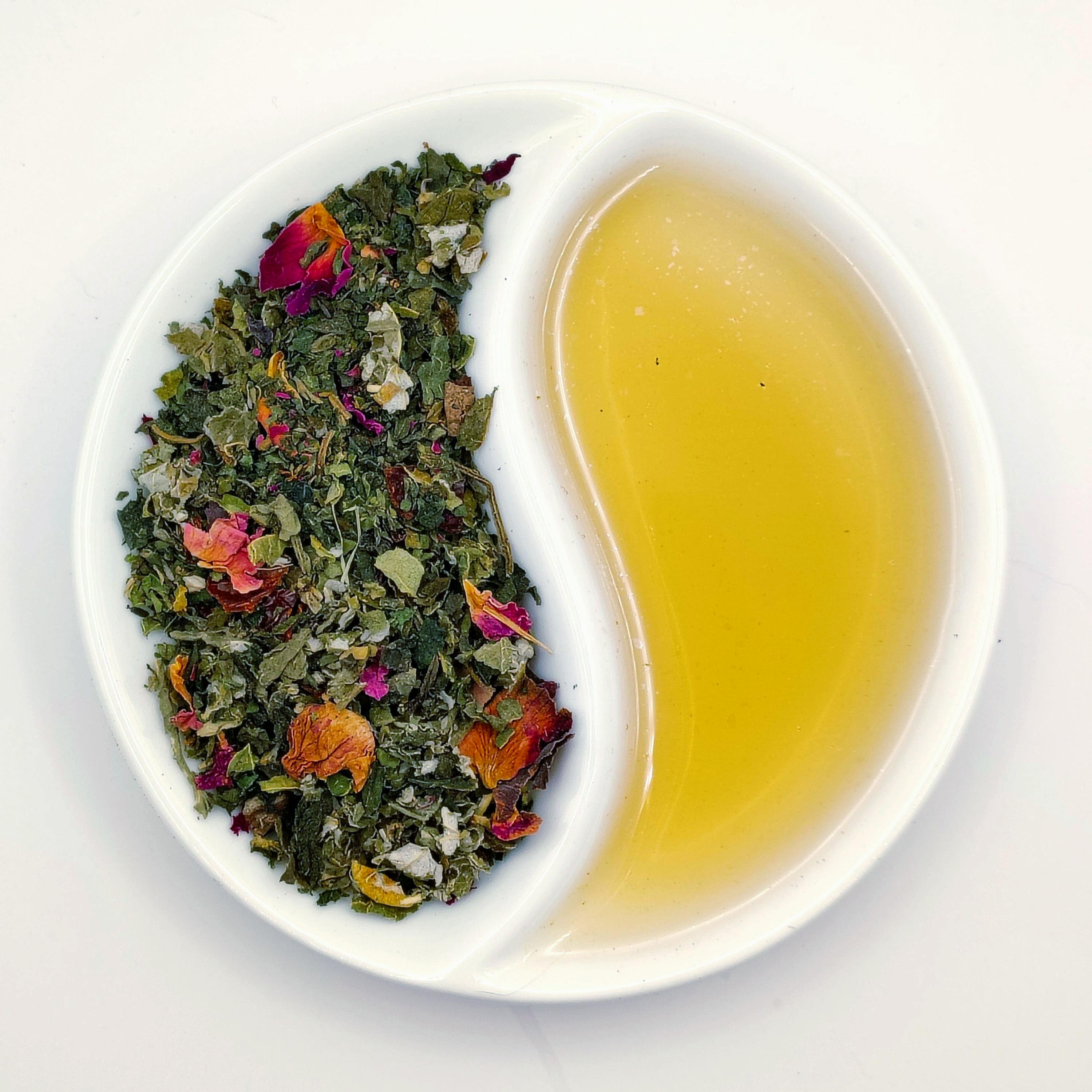 Ingredients: raspberry leaf, nettles, lemon balm, rose hips, rose petal