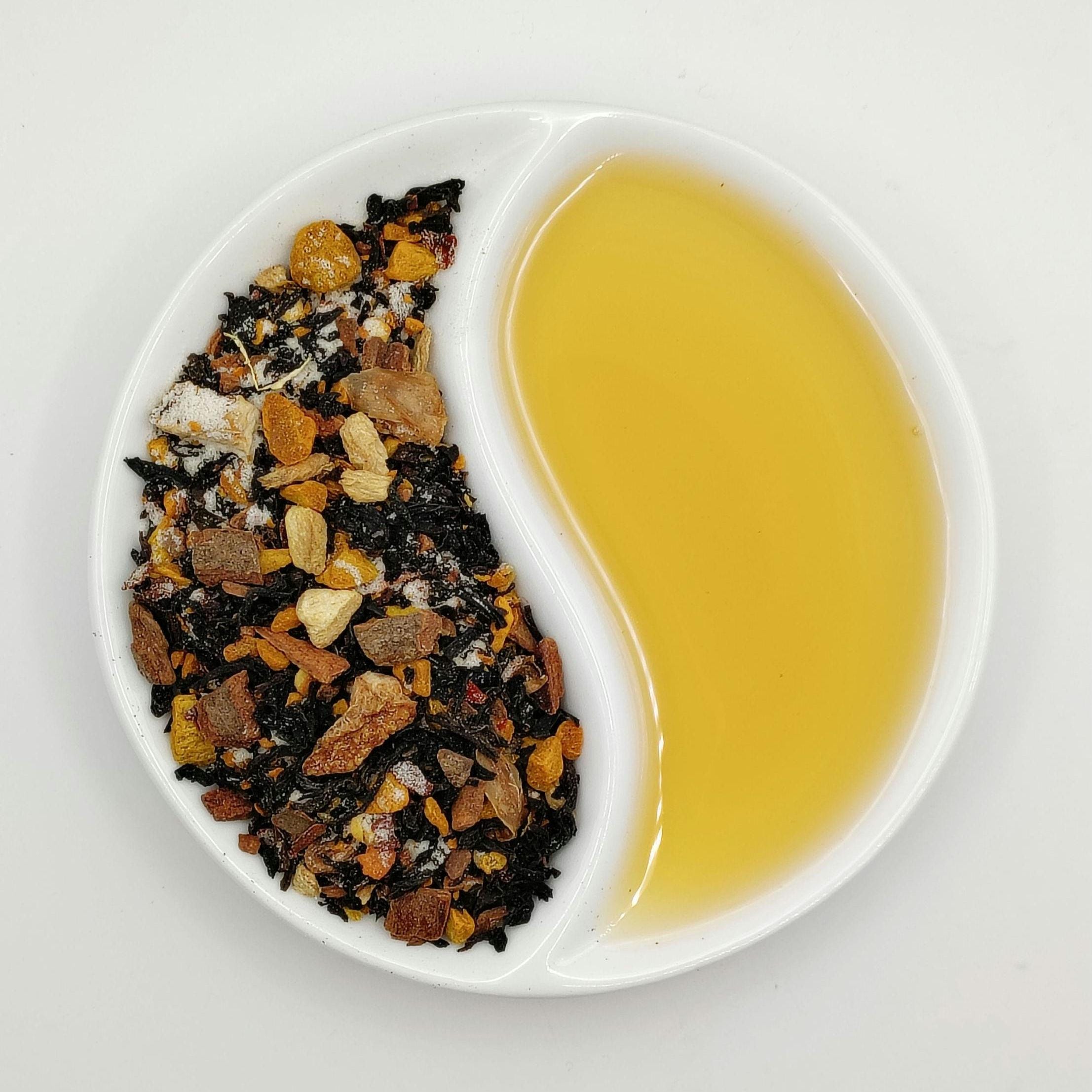 Ingredients: black tea, turmeric, cinnamon, ginger, cracked red pepper, clove, dehydrated lemon